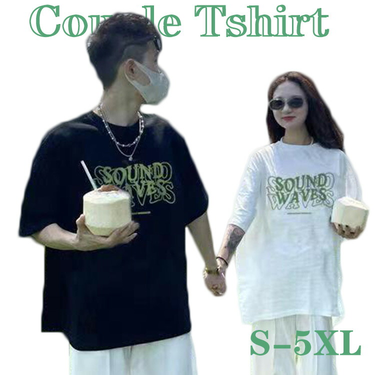 カップル ペアtシャツ 黒 可愛い ペアルック tシャツ お揃い コーデ おしゃれ カップル ペアルック Tシャツ 白 夏服 メンズ 半袖 オシャレ コーデ tシャツ レディース 2XL