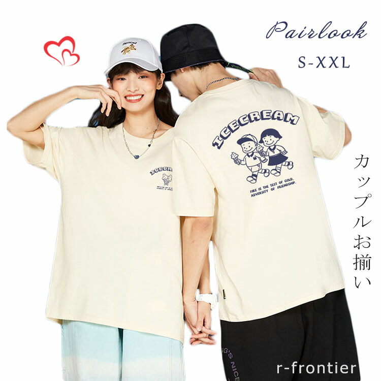 ペアルック カップル tシャツ カップル ペアルック 夏 可愛い柄 春夏 韓国風 男シャツ 半袖 ペア tシャツ お揃い ペアルックカップル オシャレ ペアルック カップル