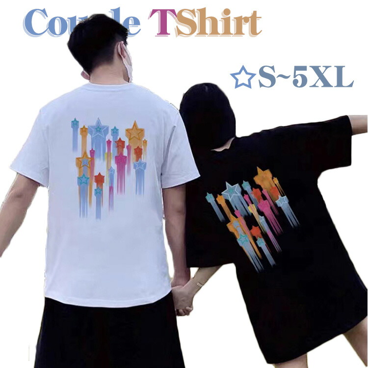 カップル ペアtシャツ カップルお揃い カラフル お揃い服 スター 大きいサイズ 可愛い tシャツ カップルお揃い 黒 白 5XL おしゃれ 五角星