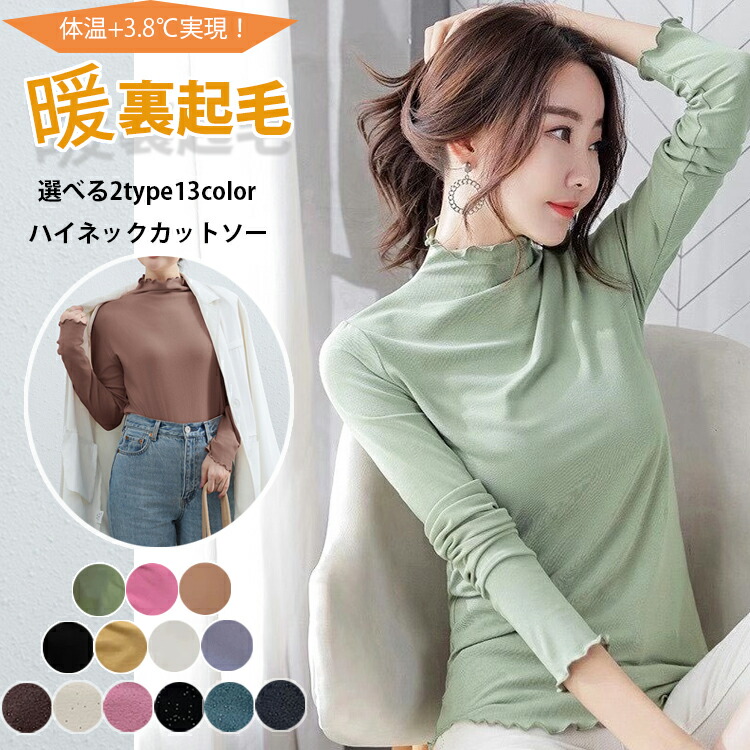 3タイプ 20カラー 裏起毛ハイネックプルオーバー レディース トップス ハイネック 裏起毛 カットソー 薄手 タイトシルエット ロンT 重ね着インナー 起毛 柔らかい