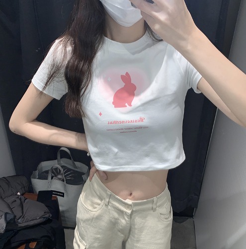 Tシャツ カットソー 五分 七分 半袖 ショート丈 切り替え スリム 大きいサイズあり 原宿系ファッション 韓国風 ダンス 衣装 ダンサー ヒップホップ HIPHOP 個性 奇抜 かわいい 青文字系