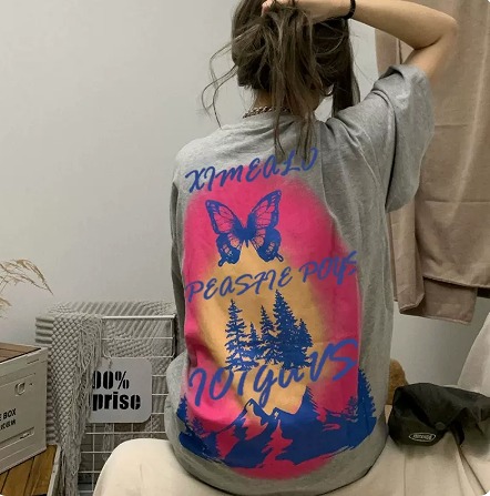 シャツ カットソー 五分 七分 半袖 プリント 切り替え 体型カバー 大きいサイズあり 原宿系ファッション 韓国風 ダンス 衣装 ダンサー ヒップホップ 個性 奇抜 かわいい 青文字系