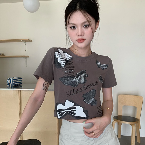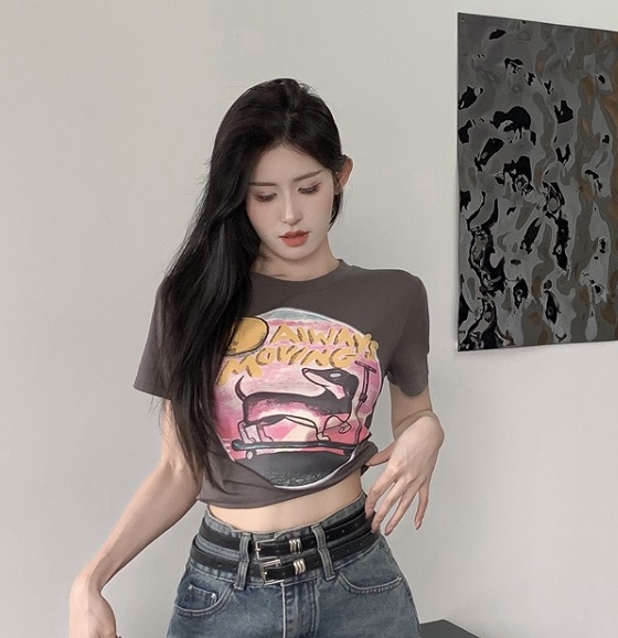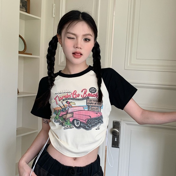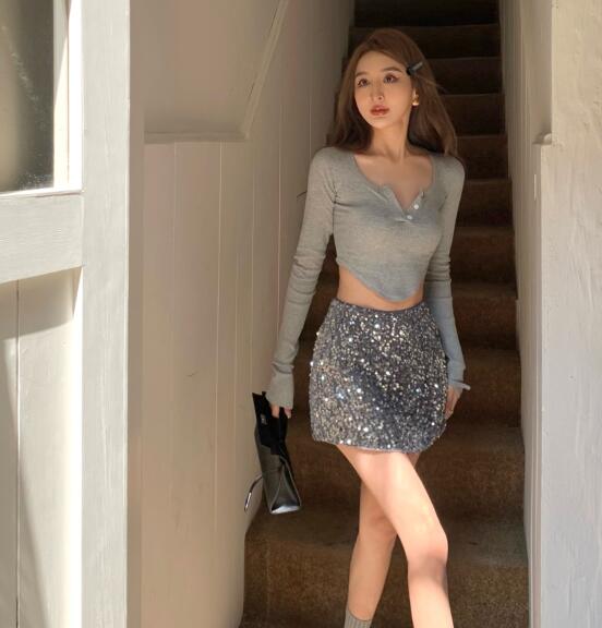 4色長袖トップスカットソーTシャツへそ出し短め短いボタン無地ブラックホワイトグレーブルーシンプルダンス衣装ヒップホップレディースガールズストリート個性的奇抜大人韓国