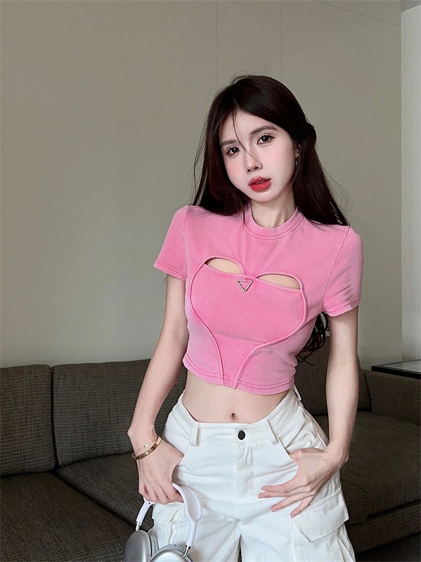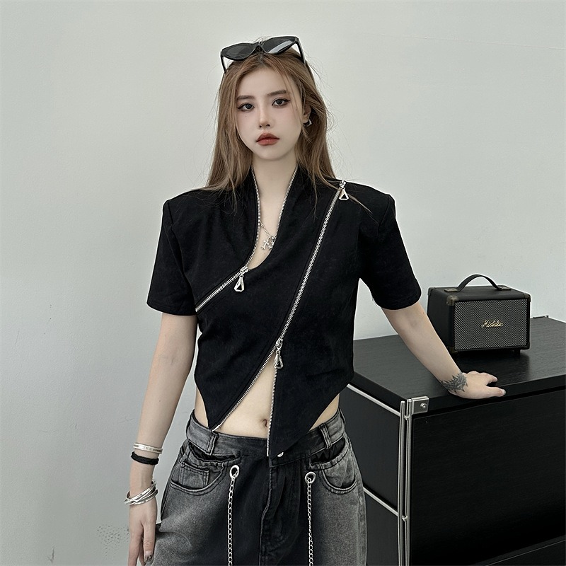 ♪~展開♪半袖五分袖トップスカットソーシャツ無地黒ブラックジッパーダンス衣装ヒップホップレディースガールズストリート個性的奇抜かっこいい
