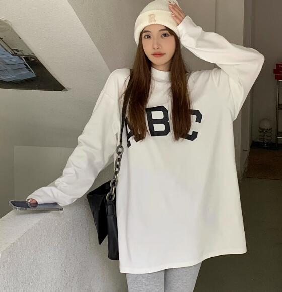 2カラーロゴ長袖スウェットトップスカットソーTシャツシンプル大きいサイズホワイトブラックビッグゆったりダンス衣装ヒップホップレディースメンズガールズストリート韓国おしゃれ奇抜派手個性的