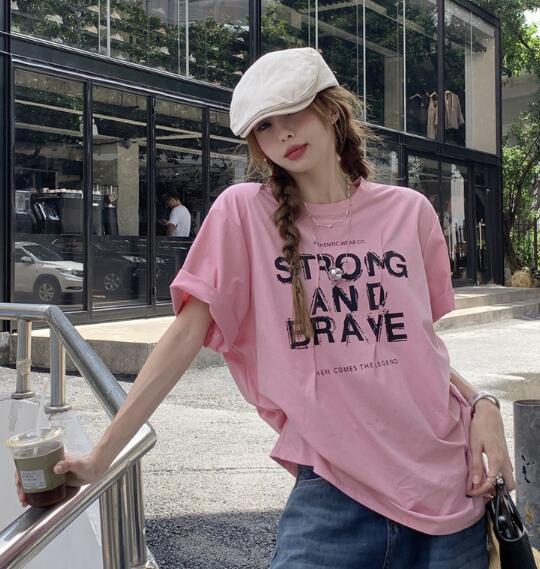 3色半袖tシャツトップスカットソーシンプルピンクブラック黒グレープリントロゴビッグロゴかわいい個性的ダンス衣装ヒップホップレディースガールズストリート服奇抜個性的大人