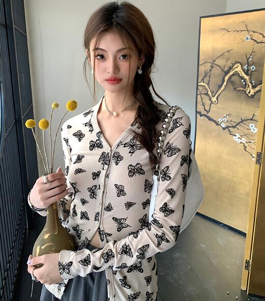 ♪-展開♪ちょうちょ長袖トップスカットソーTシャツ前開きVネック可愛いダンス衣装ヒップホップレディースガールズストリート個性的奇抜大人韓国春夏秋
