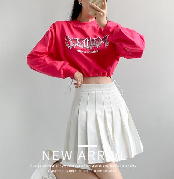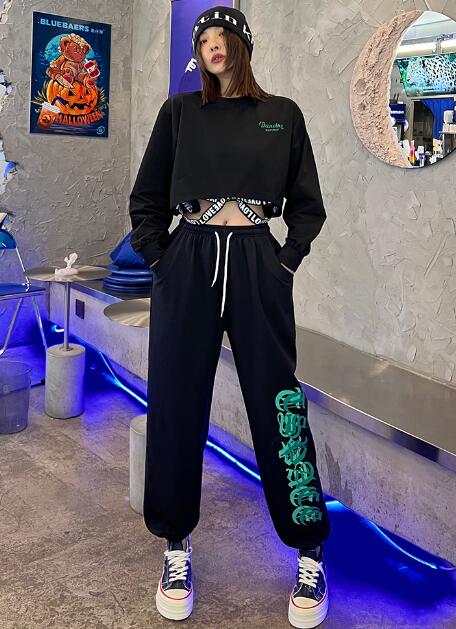 長袖ショート丈短い短めへそ出しセクシーロゴダンス衣装ヒップホップレディースガールズストリートスケーター韓国おしゃれ奇抜派手部活イベント文化祭ダンス衣装
