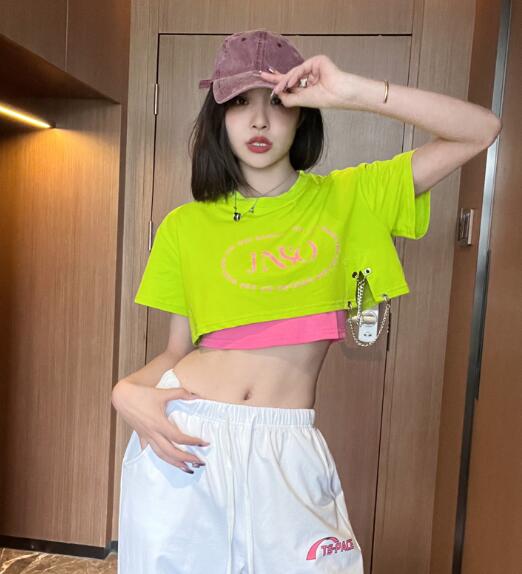 半袖ショート丈短い短めへそ出しセクシーロゴダンス衣装ヒップホップレディースガールズストリートスケーター韓国おしゃれ奇抜派手部活イベント文化祭ダンス衣装