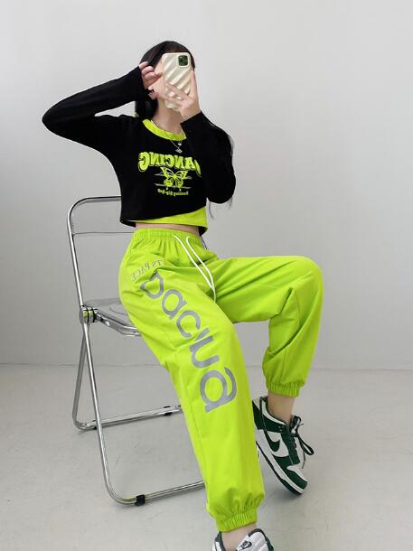 レディース ダンス衣装 トップス 短め短い蛍光色 衣装 ダンス イベント文化祭 コスチューム 韓国ファッション HIPHOP ヒップホップ 長袖 個性的