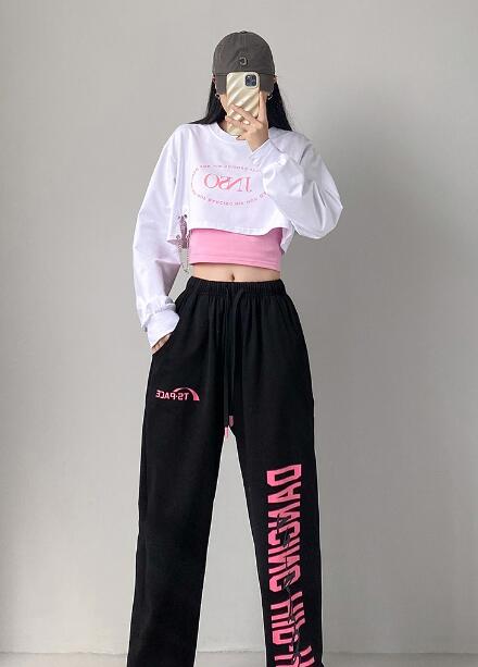 ライン長袖ショート丈短い短めへそ出しセクシーロゴダンス衣装ヒップホップレディースガールズストリートスケーター韓国おしゃれ奇抜派手部活イベント文化祭ダンス衣装