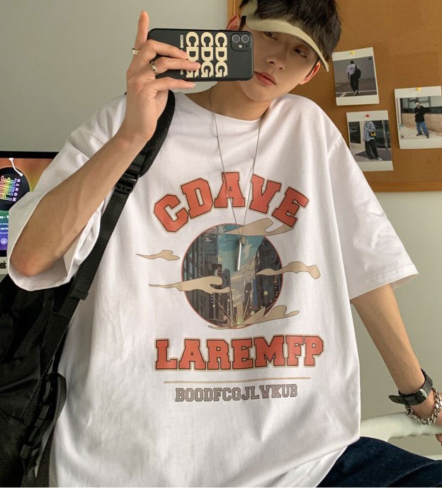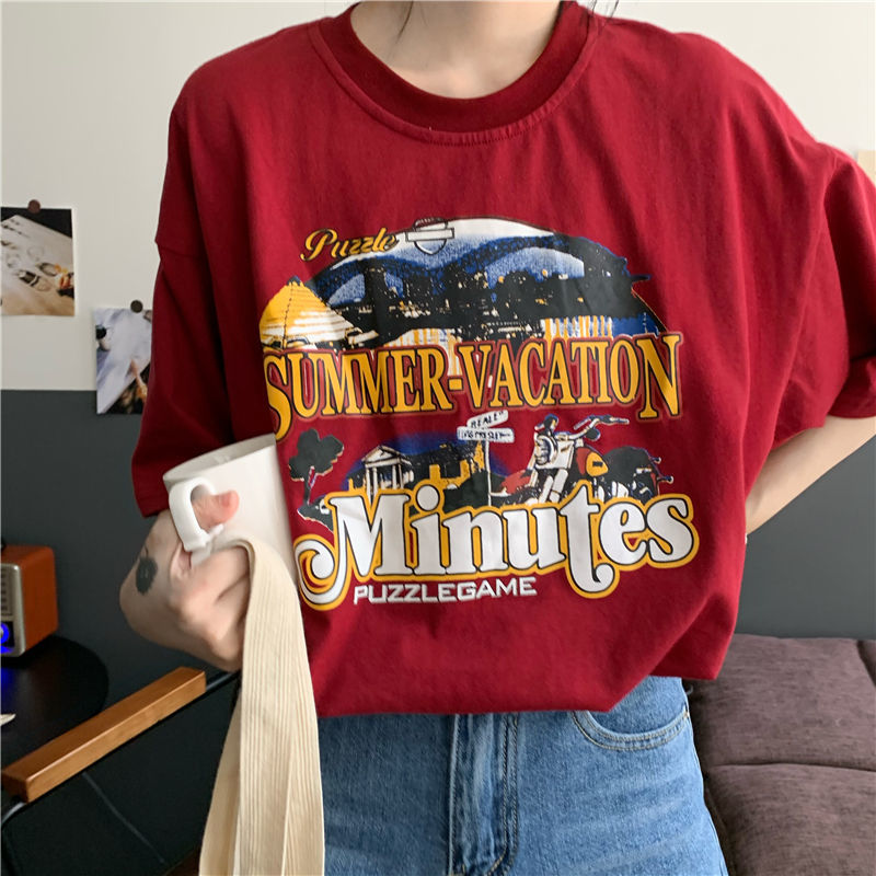 ロゴシャツ3色プリントデザイン半袖トップスカットソー大きいサイズビッグ白ホワイト黒ブラックグレーレトロ外国風景アメリカヴィンテージダンス衣装ヒップホップレディースメンズストリート個性的奇
