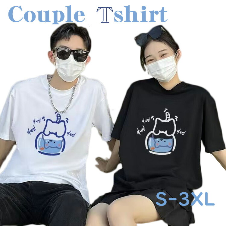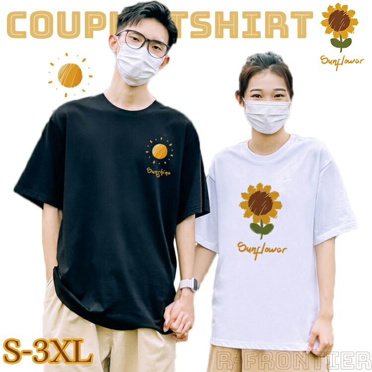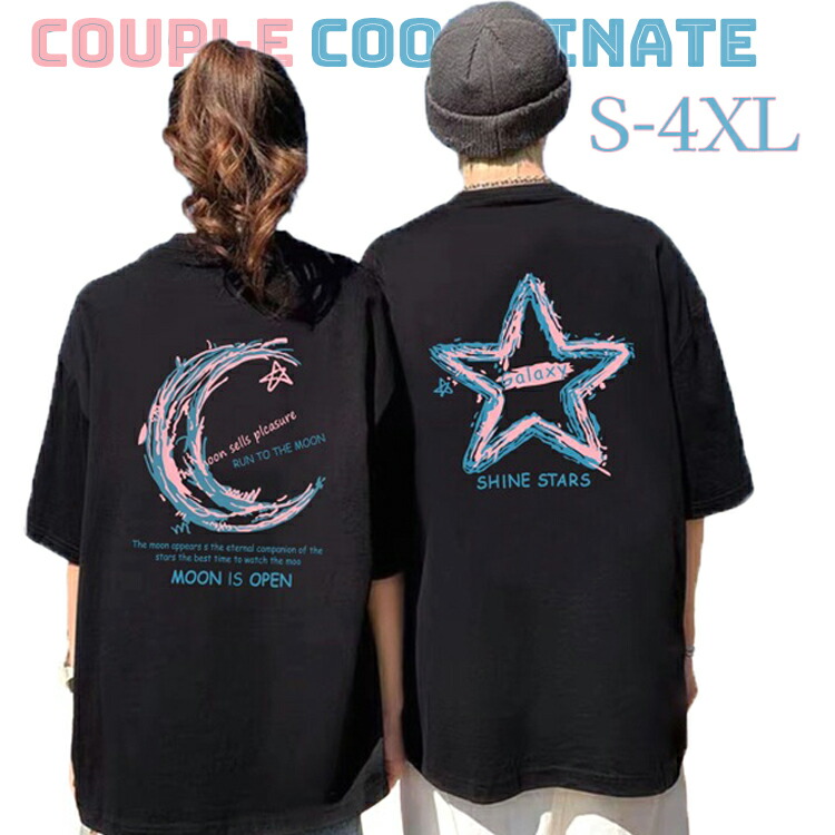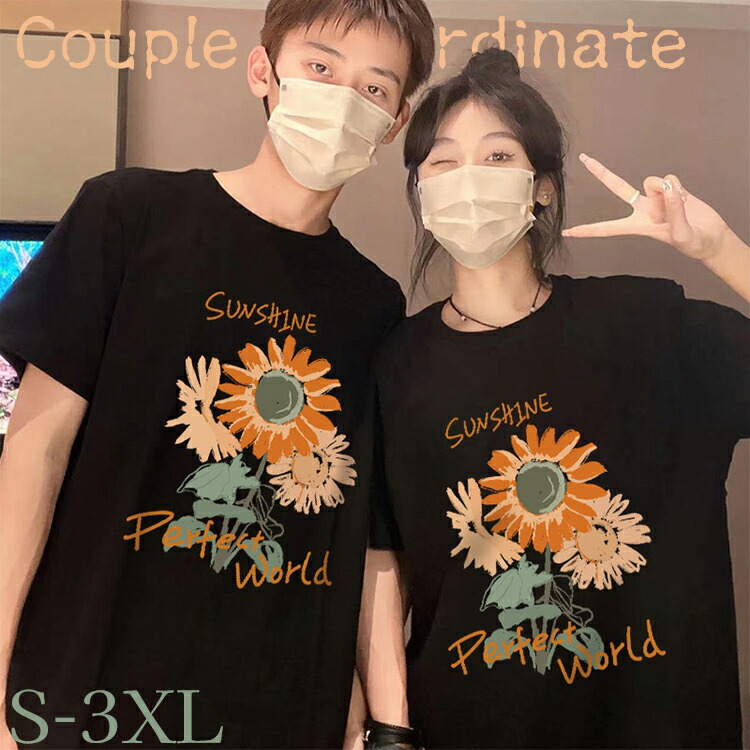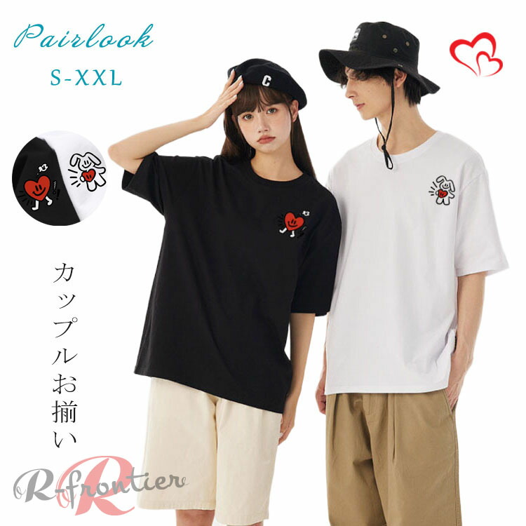 カップル ペアルック tシャツ 黒 可愛い 夏服 ペアルック tシャツ お揃い コーデ おしゃれ カップル ペアルック Tシャツ 白 夏服 メンズ 半袖 オシャレ コーデ tシャツ レディース 2XL