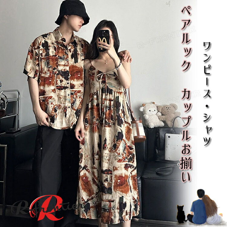 ペアルック カップル シャツ カップル ペアルック 夏 可愛い柄 春夏 韓国風 男シャツ 半袖 ペア シャツ お揃い ペアルックカップル オシャレ ペアルック カップル