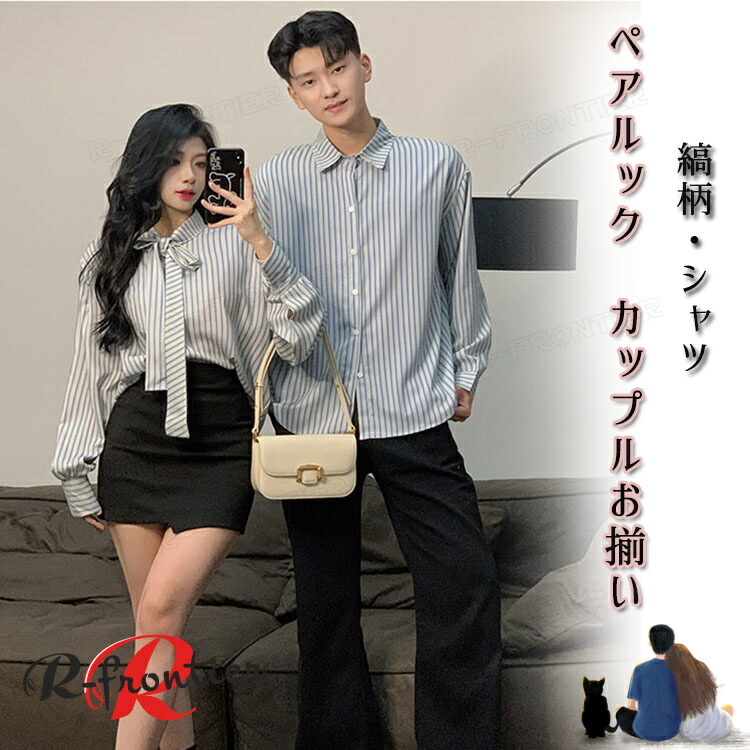 ペアルック カップル 縞柄シャツ ペアルック 韓国風 シャツ 男シャツ 長袖 ペア tシャツ お揃い ペアルックカップル オシャレ