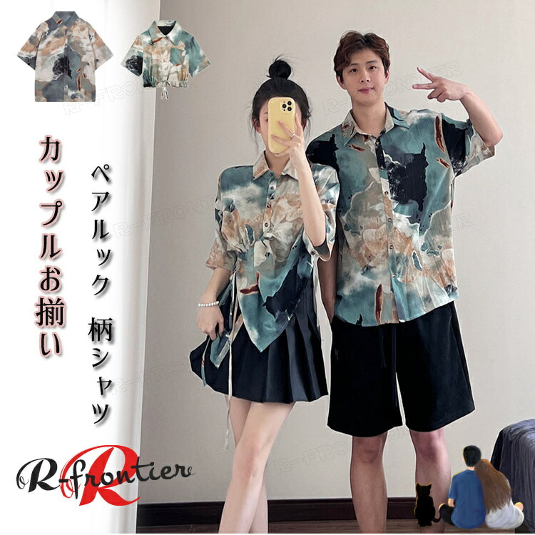 ペアルック 柄シャツ 夏 半袖 韓国風 男シャツ 半袖 ペア tシャツ お揃い ペアルックカップル オシャレ