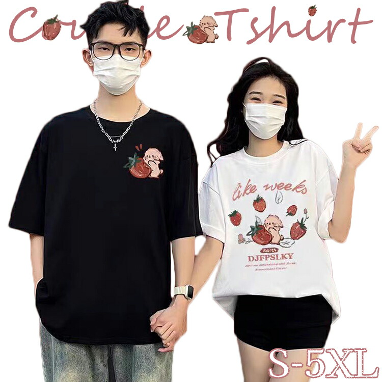 カップル ペアルック tシャツ 夏 半袖 イチゴ ペアルック tシャツ ウサギ 夏服 ペア 夫婦 オーバー サイズ ゆったり カップル リンクコーデ 可愛い柄 春夏 韓国風
