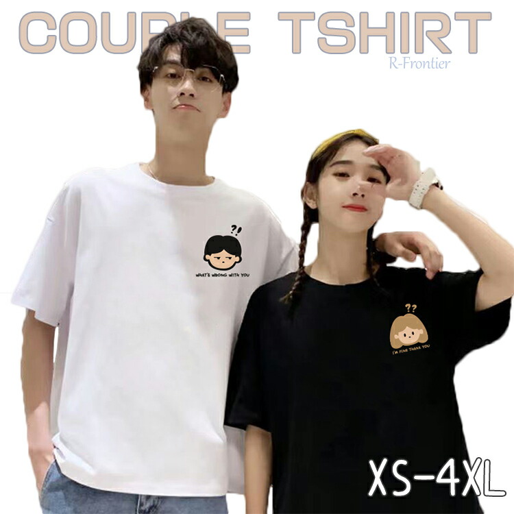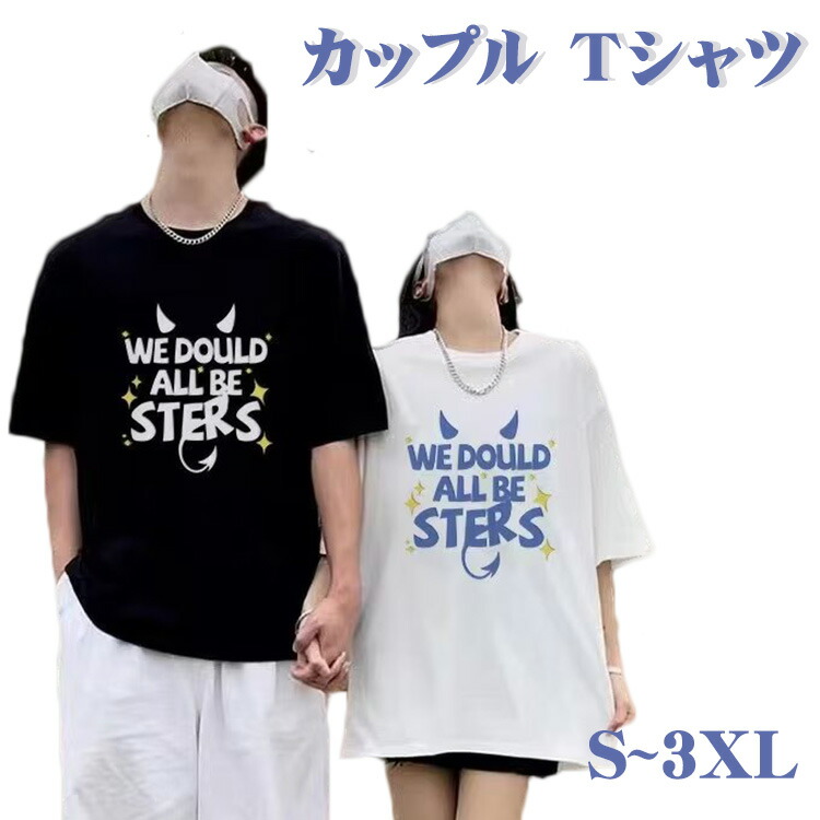 Tシャツ カップル ペアtシャツ ペアルック 可愛い tシャツ 英語字 お揃い服 カップル柄 黒 白 大きいサイズ オーバーサイズ XS-4XL