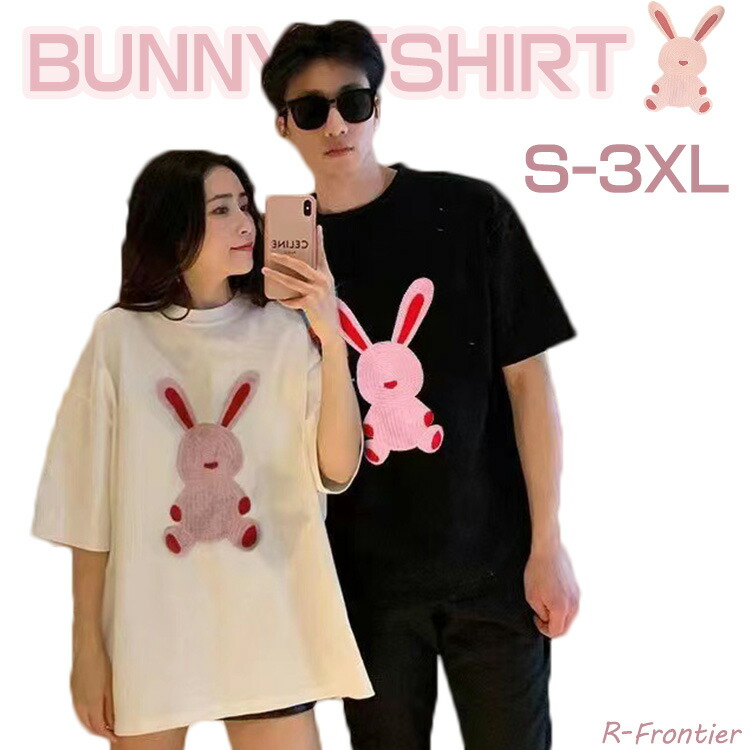 ペアルック ウサギ シャツ カップル ペアシャツ カップルお揃い ピンクウサギ お揃い服 黒 白 大きいサイズ 可愛い