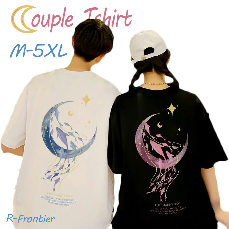 ペアtシャツ 夏 ペアルック イルカ tシャツ ピンクムーン 夏服 お揃い服 プレゼント 記念日レディースファッション トップス Tシャツ カットソー