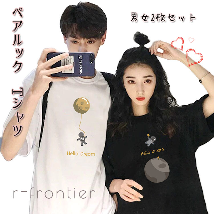 ペアルック カップル tシャツ カップル ペアルック 夏 可愛い柄 春夏 韓国風 男シャツ 半袖 ペア tシャツ お揃い ペアルックカップル オシャレ ペアルック カップル