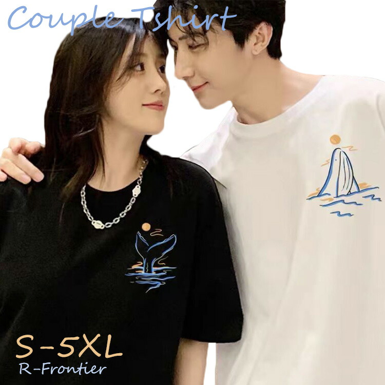 カップルお揃い カップル ペアtシャツ 大きいサイズ クジラ tシャツ カップルお揃い 黒 白 大きいサイズ オーバーサイズ トップス プレゼント 夏服 記念日