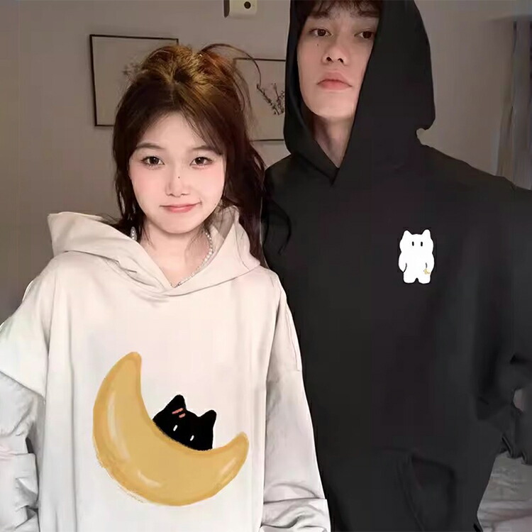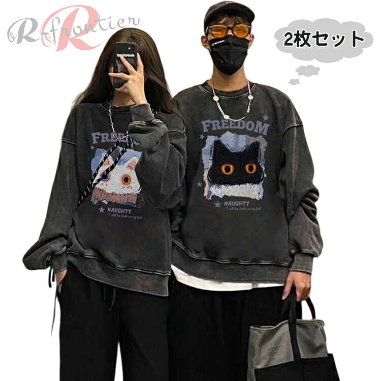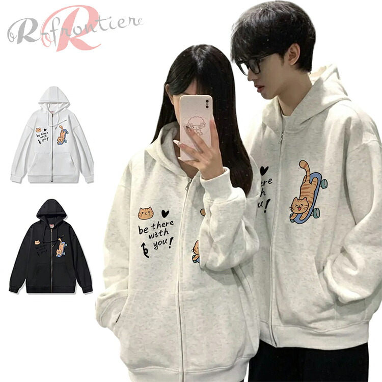 カップル ペアルック パーカー ペアルック 猫 春 秋 お揃い服 ペア 夫婦 オーバー サイズ ゆったり カップル リンクコーデ 可愛い柄 春 韓国風