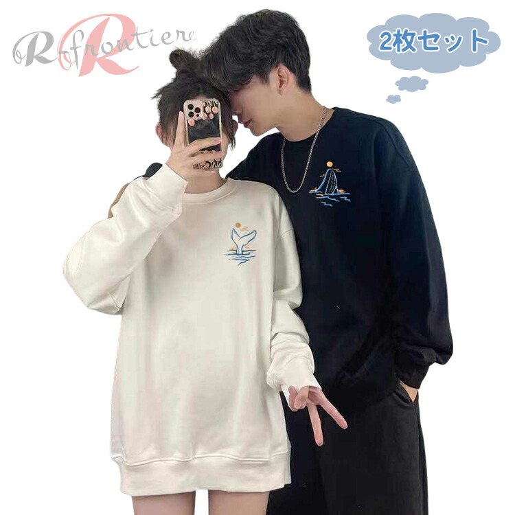 カップル ペアルック パーカー ペアルック 鯨 春 秋 お揃い服 ペア 夫婦 オーバー サイズ ゆったり カップル リンクコーデ 可愛い柄 春 韓国風