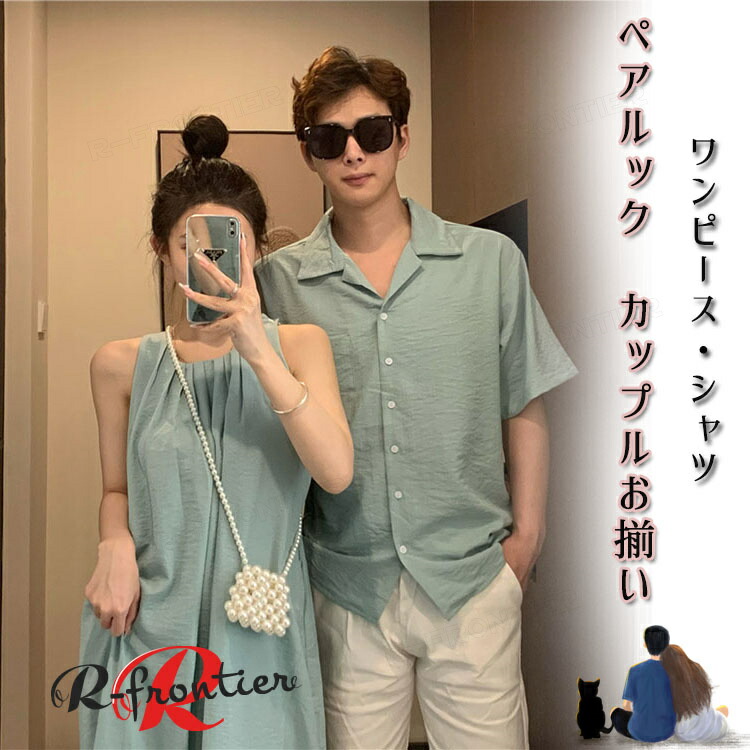 ペアルック カップル ワンピース ペアルック 夏 韓国風 シャツ ワンピース 男シャツ 半袖 ペア tシャツ お揃い ペアルックカップル オシャレ