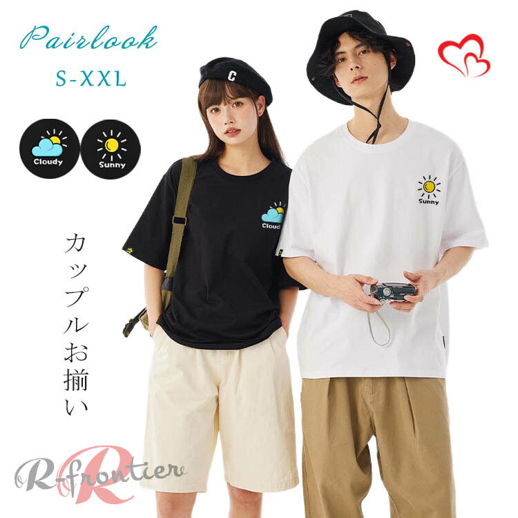 カップル ペアルック tシャツ 黒 可愛い 夏服 ペアルック tシャツ お揃い コーデ おしゃれ カップル ペアルック Tシャツ 白 夏服 メンズ 半袖 オシャレ コーデ tシャツ レディース 2XL