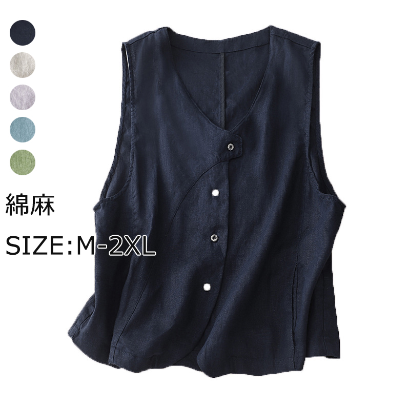 ふんわりしてリネンベスト タンクトップ レディース 綿麻アウター 重ね着 カットソー ノースリーブ 30代40代50代60代 フレアトップス 夏服 快適 吸湿 綿麻 トップス