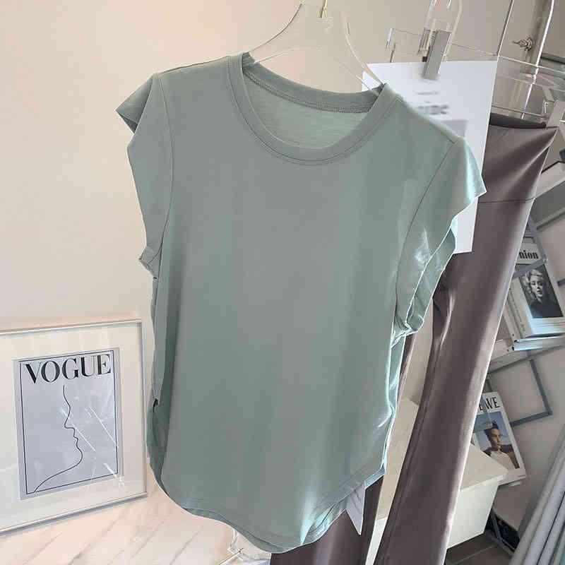 Tシャツ レディース 夏 吸汗速乾 フレンチスリーブ クルーネック 半袖 薄手 無地 スポーツ ヨガウェア 女性 スリム 通気性 きれいめ