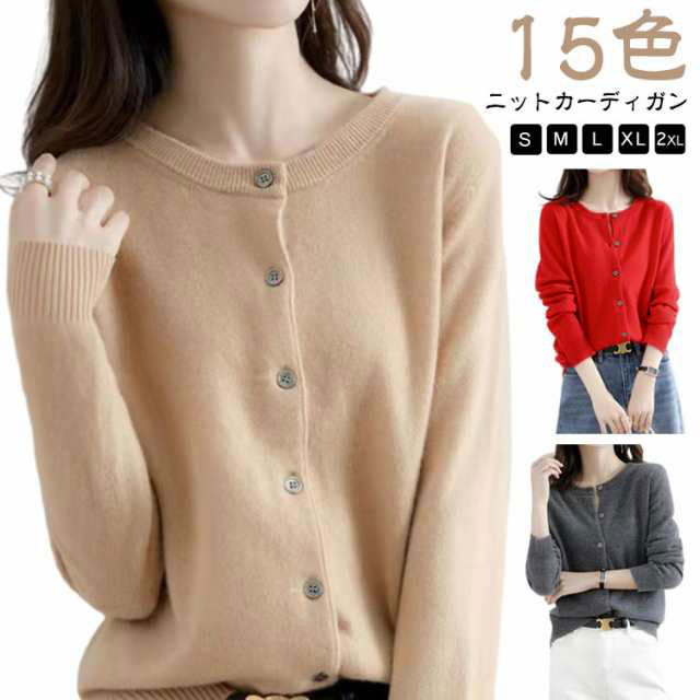 15色 ♪ カーディガン トップス レディース 春 秋 冬 長袖 クルーネック 厚手 ニットカーディガン ニットトップス ニットセーター アウター 羽織り 暖かい ゆったり 大きいサイズ きれいめ お