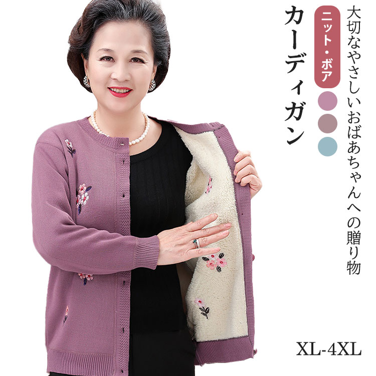 軽くて暖かいおばあちゃん用裏ボアカーディガンです 保温効果は抜群レディースファッション トップス カーディガン ボレロ