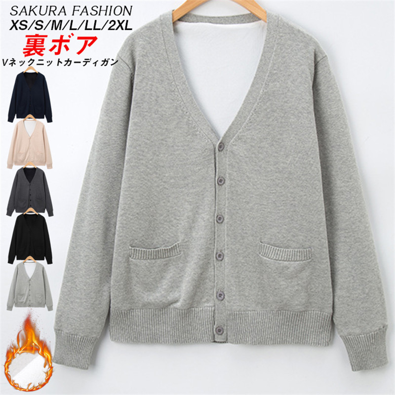 裏起毛vネックカーディガン ブラック 黒 ベージュ ライトグレー ダークグレー ネイビー XS SS S M L XL LL 2XL 3L 無地 シンプル 冬 防寒