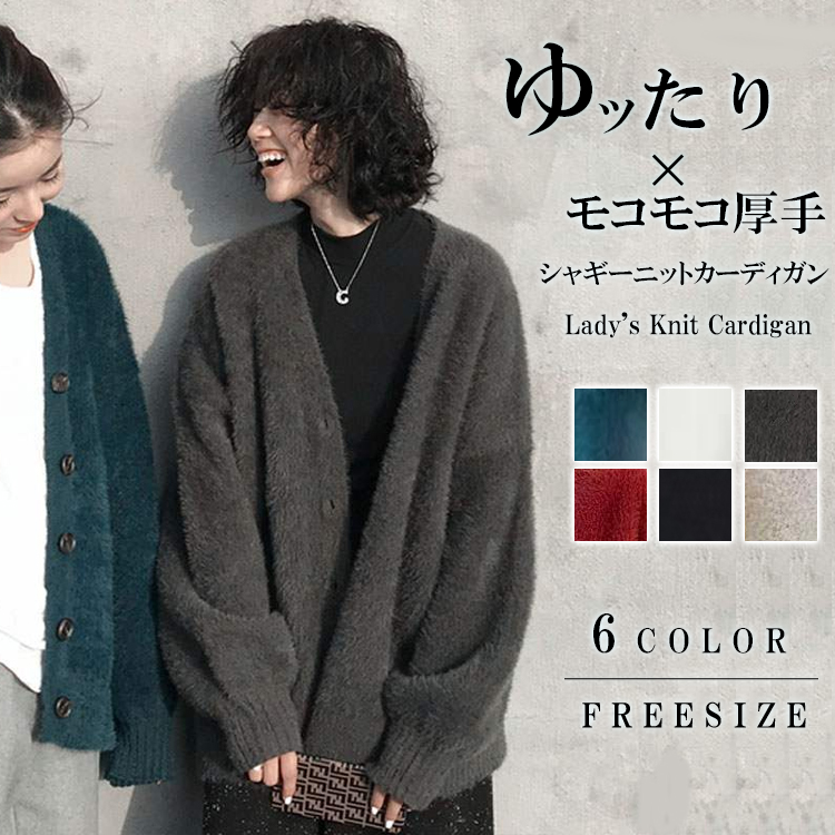 サイズ シャギーニットカーディガン ふわふわ もこもこ ネック 長袖 シャギー 防寒 大人可愛い きれいめ カジュアル シンプル おしゃれ レディース