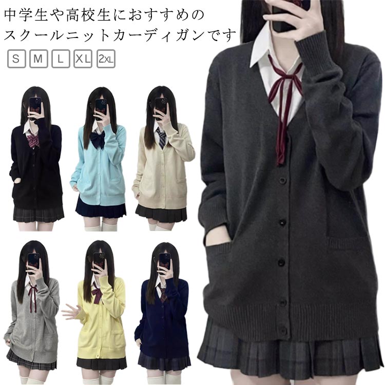 スクール カーディガン 学生 女子 Vネック スクールカーディガン 制服 洗える スクールニット シンプル 無地
