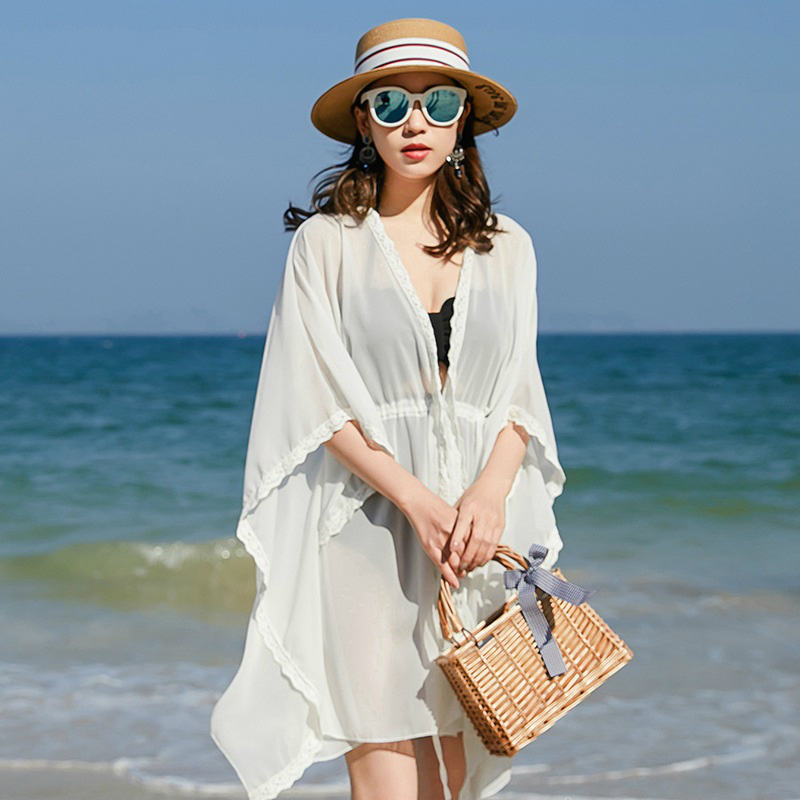 レディース 韓国ファッション ビーチカーディガン レース ガウン ロング 5分丈 サマーコーデ レース 水着羽織 ビーチウエア 透け感 カジュアル 大人 大人女子 体型カバー キュート
