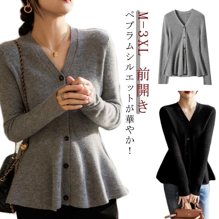ペプラムニット カーディガン ニットカーディガン Vネック 長袖レディースファッション トップス カーディガン ボレロ