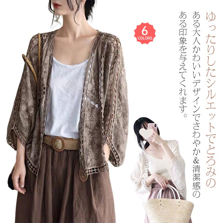 冷房対策 透け感 カット カット ゆったり サマーカーディガンレディースファッション トップス カーディガン ボレロ