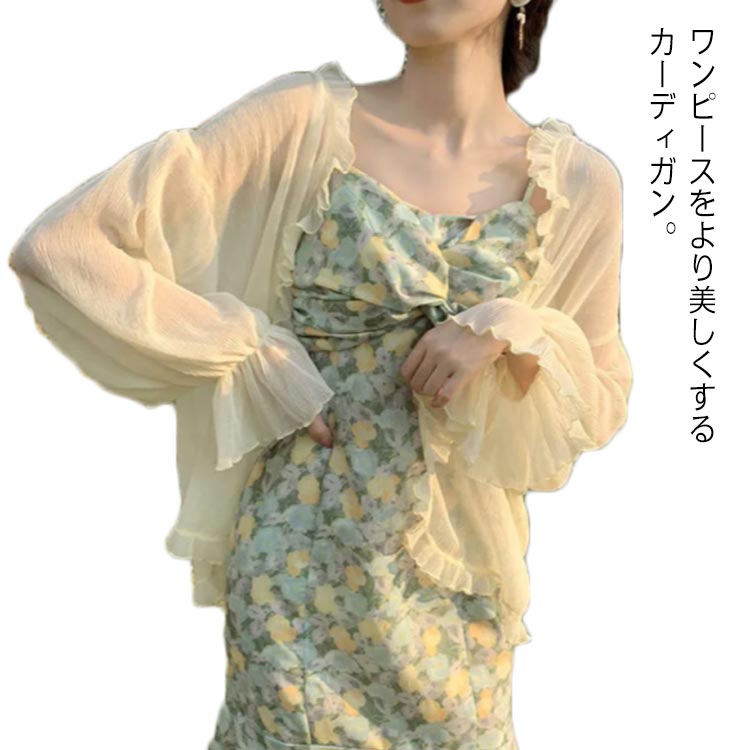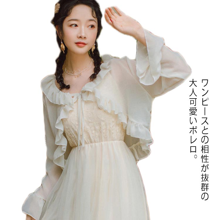 羽織り レディース 薄手 夏 カーディガン 春 シフォン ボレロ レディース 紫外線対策 軽い カット ショート丈 フリル アウター サマーカーディガン 冷房対策 長袖 トップス 白 ゆったり き