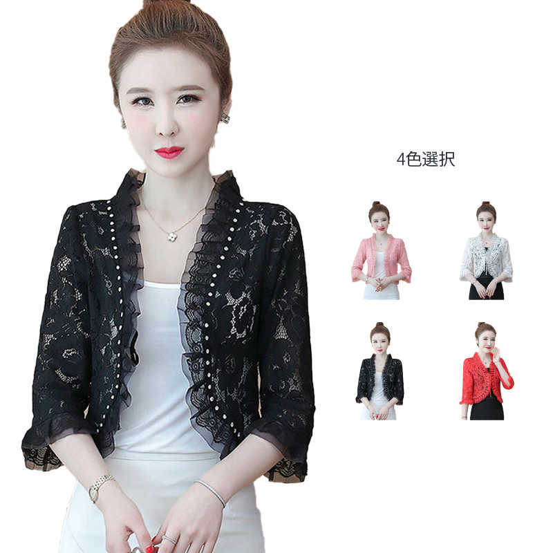 羽織り 花柄レース 刺繍カーディガン フリル シースルー シアー プレゼント 春夏 母の日 カット