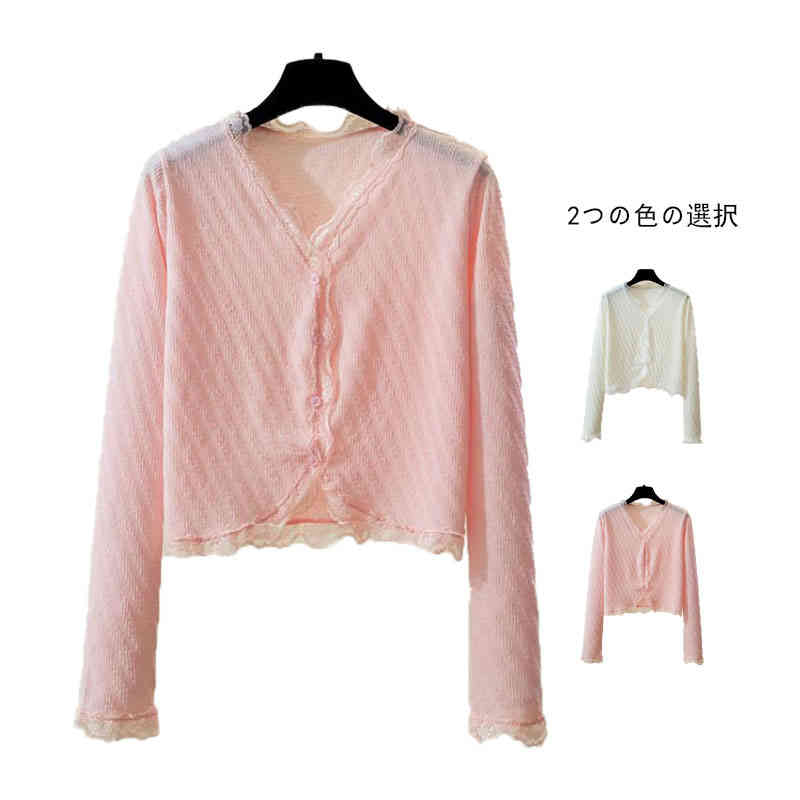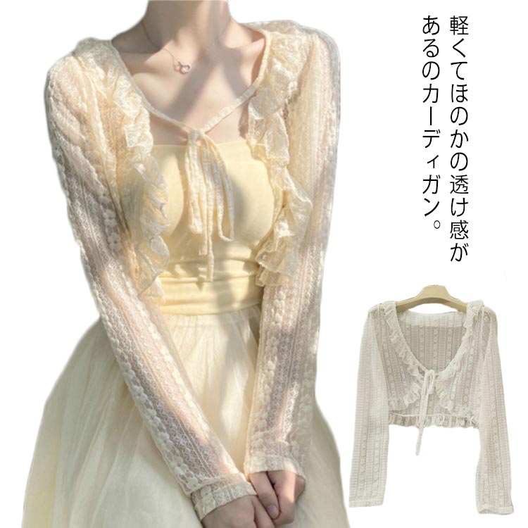 日焼け対策 カーディガン フリル 紫外線カット レース きれいめ 薄手 春 大人可愛い おしゃれ 対策 レディース 涼しい ボレロ 羽織り アウター 長袖 ショート丈 冷房対策 トップス 夏