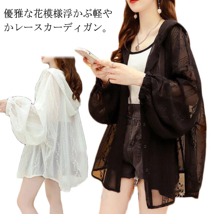 羽織り 花柄レース 刺繍カーディガン フリル シースルー シアー プレゼント 春夏 母の日 UVカット