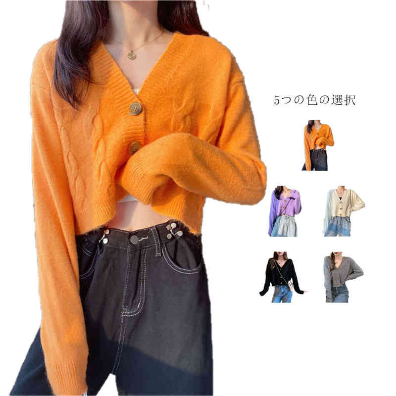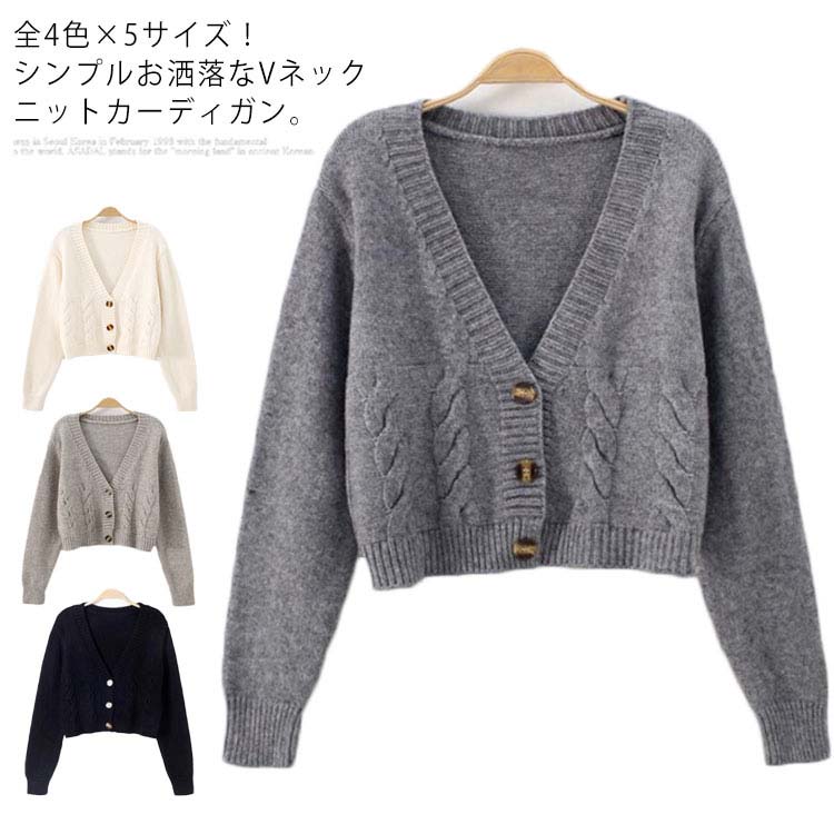 ニットカーディガン レディース 春秋冬 インナーウエア ショート丈 ニット カーディガン Vネック 長袖 ざっくりニット