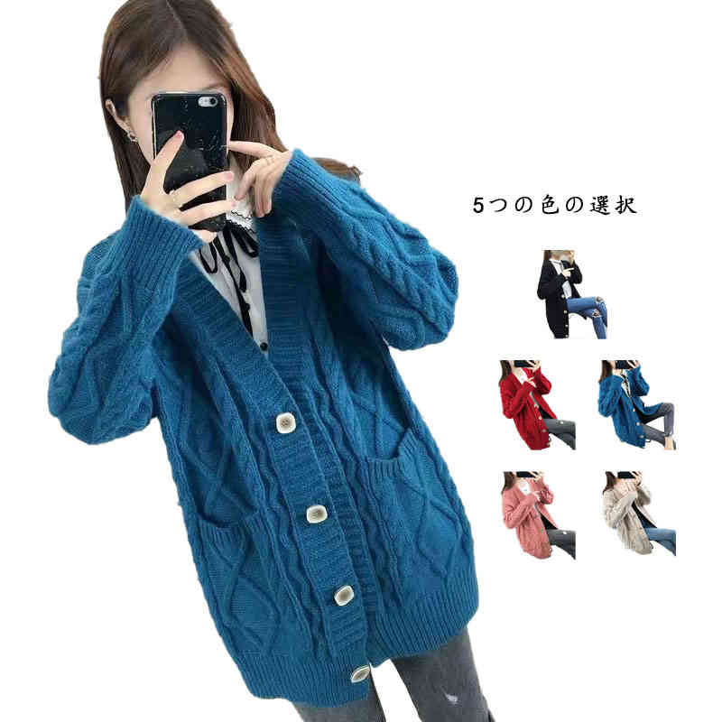 ニットカーディガン レディース 羽織り アウター 長袖 体型カバー 春 秋冬 ニットカーディガン ケーブル編み