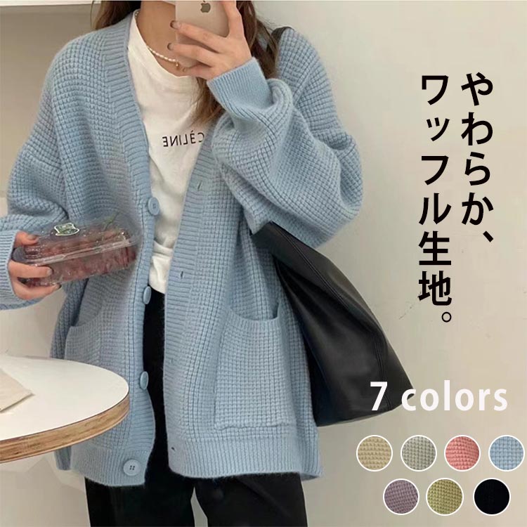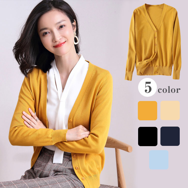 カーディガン レディース ニット セーター 通学 通勤 カジュアル Vネックカーディガン 長袖 無地 シンプル 着回し 体型カバートップス ゆったり 看護師 オールシーズン 冷房対策 秋 S M L