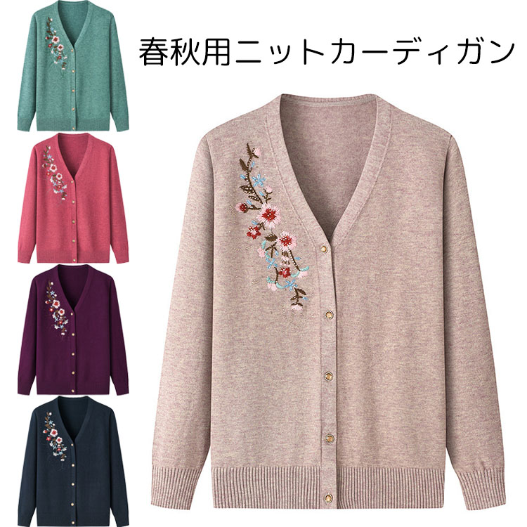前開き 着やすい 柔らかい きれいな刺繡柄 おばあちゃん シニア ニットカーディガン 80代 70代 60代 90代
