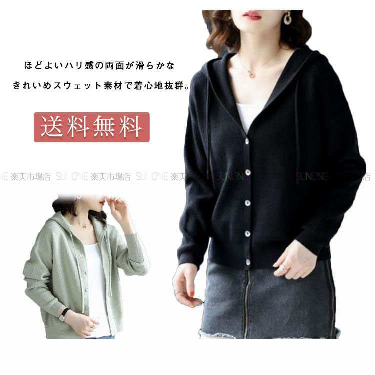 ニットカーディガン カーディガン レディース アウター 春秋 ゆったり フード付き ニット ルームカーディガン オフィス vネック シンプル ショート丈