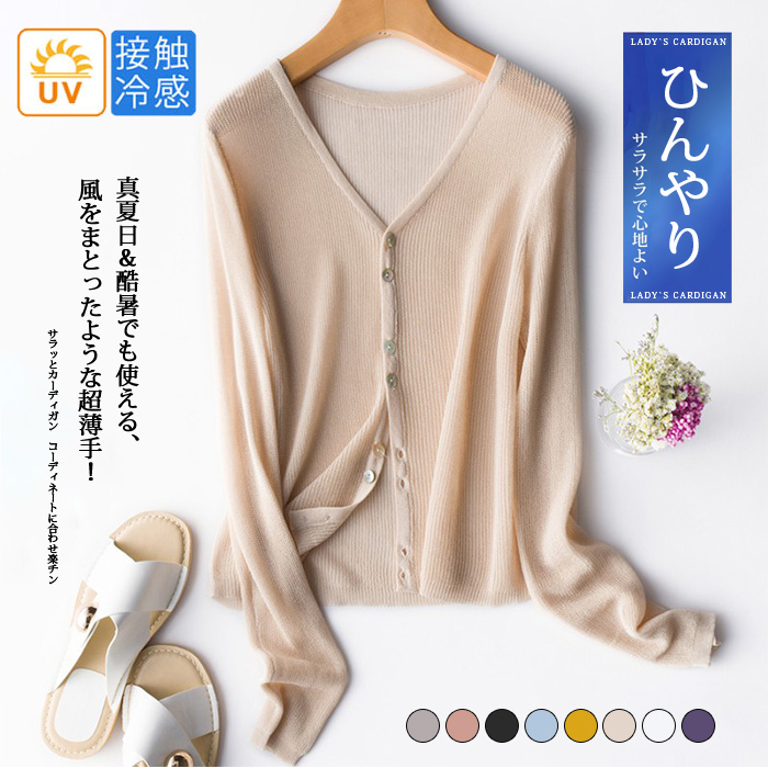 接触冷感 年中愛用 3シーズン対応、夏に日焼け防止冷房対策 カット サマーカーデ 春秋冬 羽織 オフィス サマーカーディガン サマーカーデ カジュアル